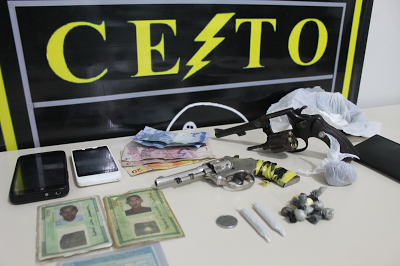 A moto usada no assalto, uma Honda Fan 150, de cor preta, placa NYY-4661, e os dois revólveres calibres 22 e 32, foram apreendidos. Na ação, a polícia também apreendeu 7 trouxinhas de cocaína, uma porção de maconha, munições, dois aparelhos celulares e dinheiro. O trio é suspeito de participação em outros assaltos praticados na cidade. A ocorrência foi apresentada na Delegacia Territorial (DT) de Serrinha, responsável pelas investigações do caso.